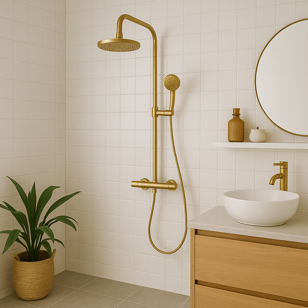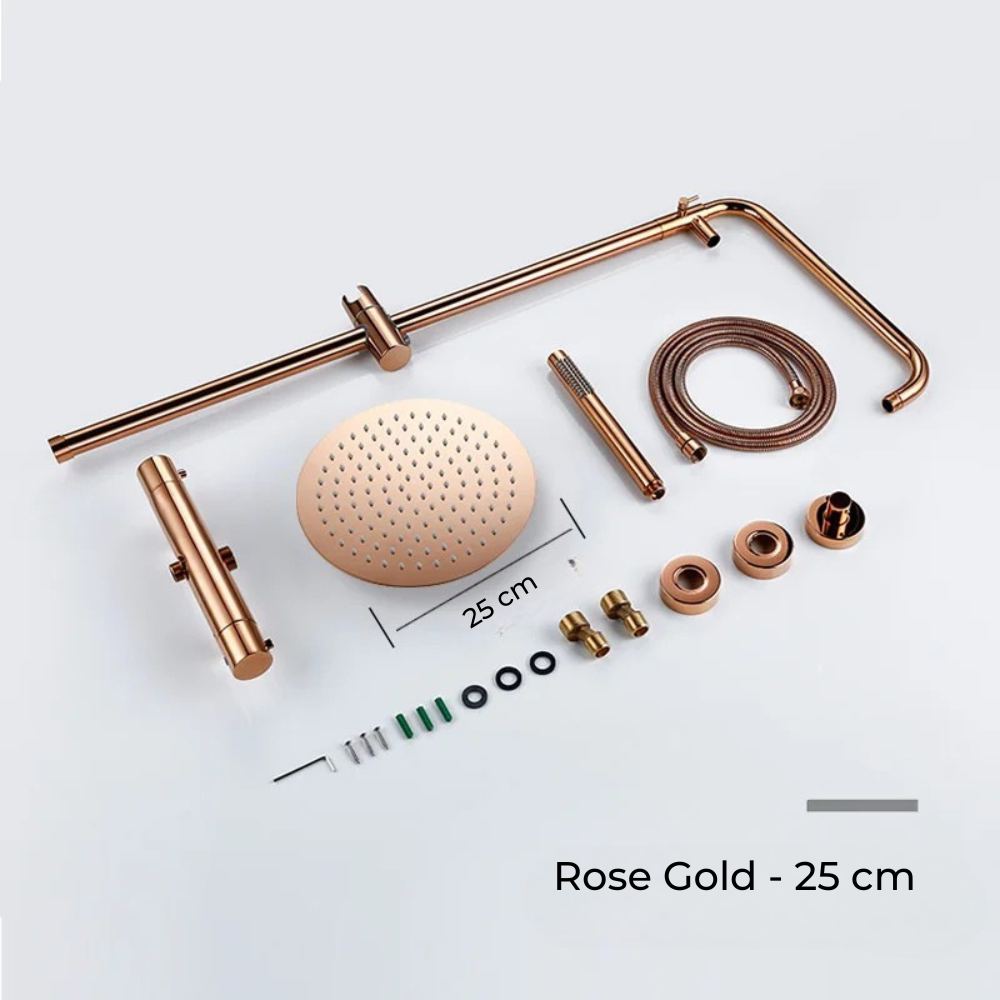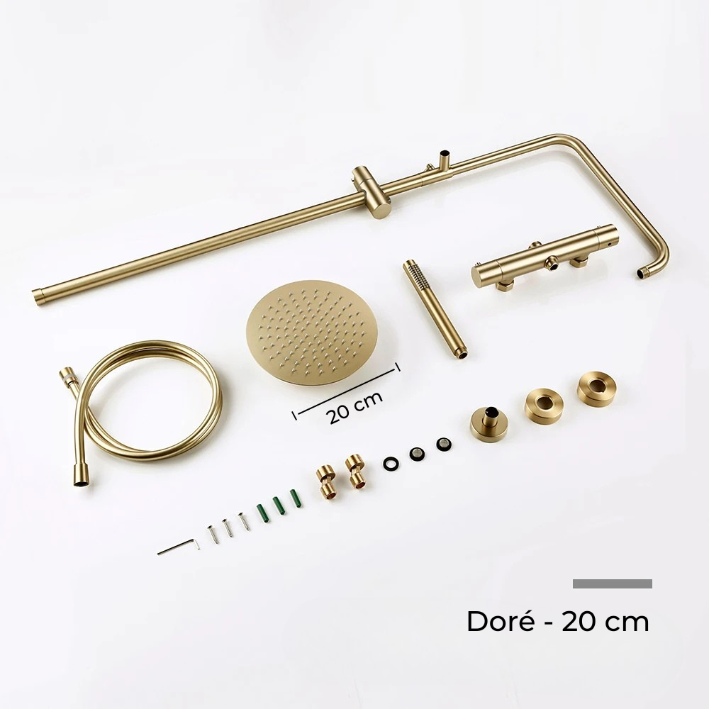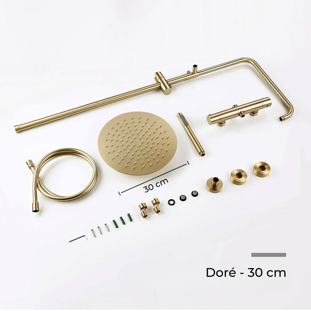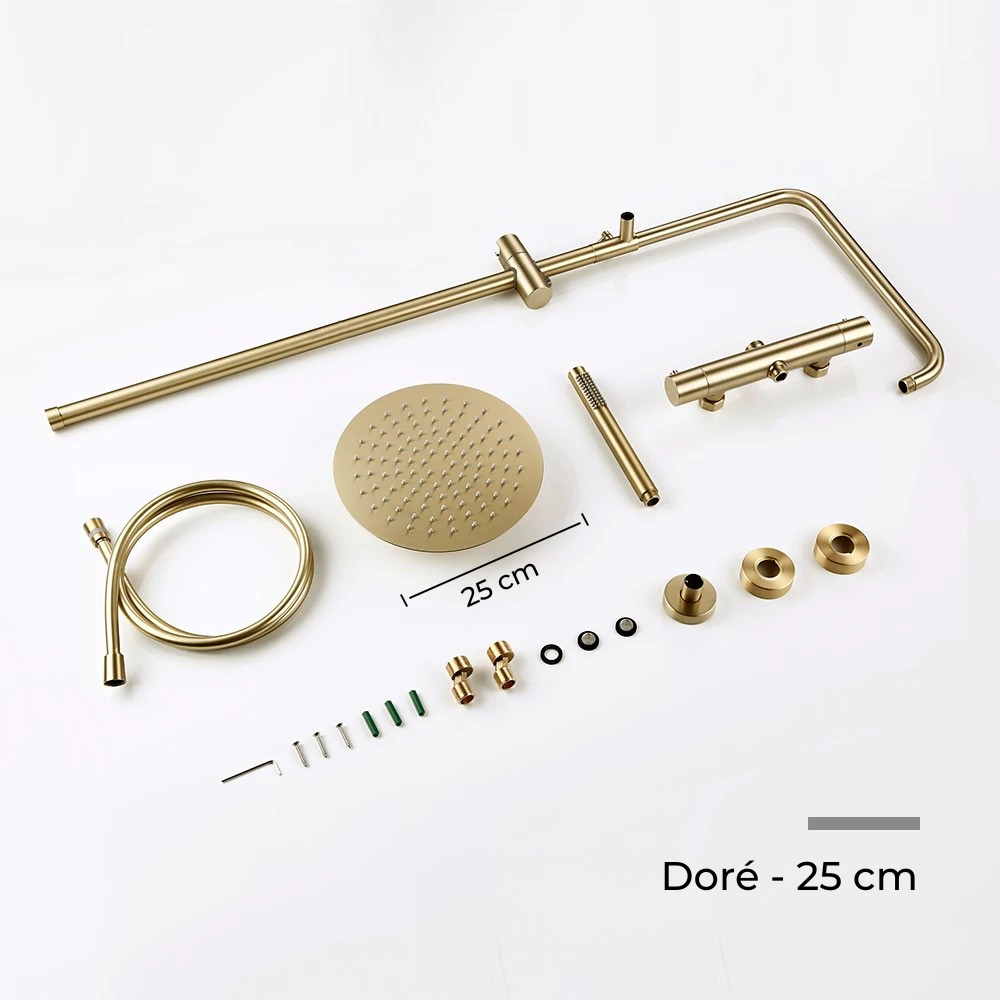 Colonne de Douche Murale Dorée avec Mitigeur Thermostatique et Ciel de Pluie
