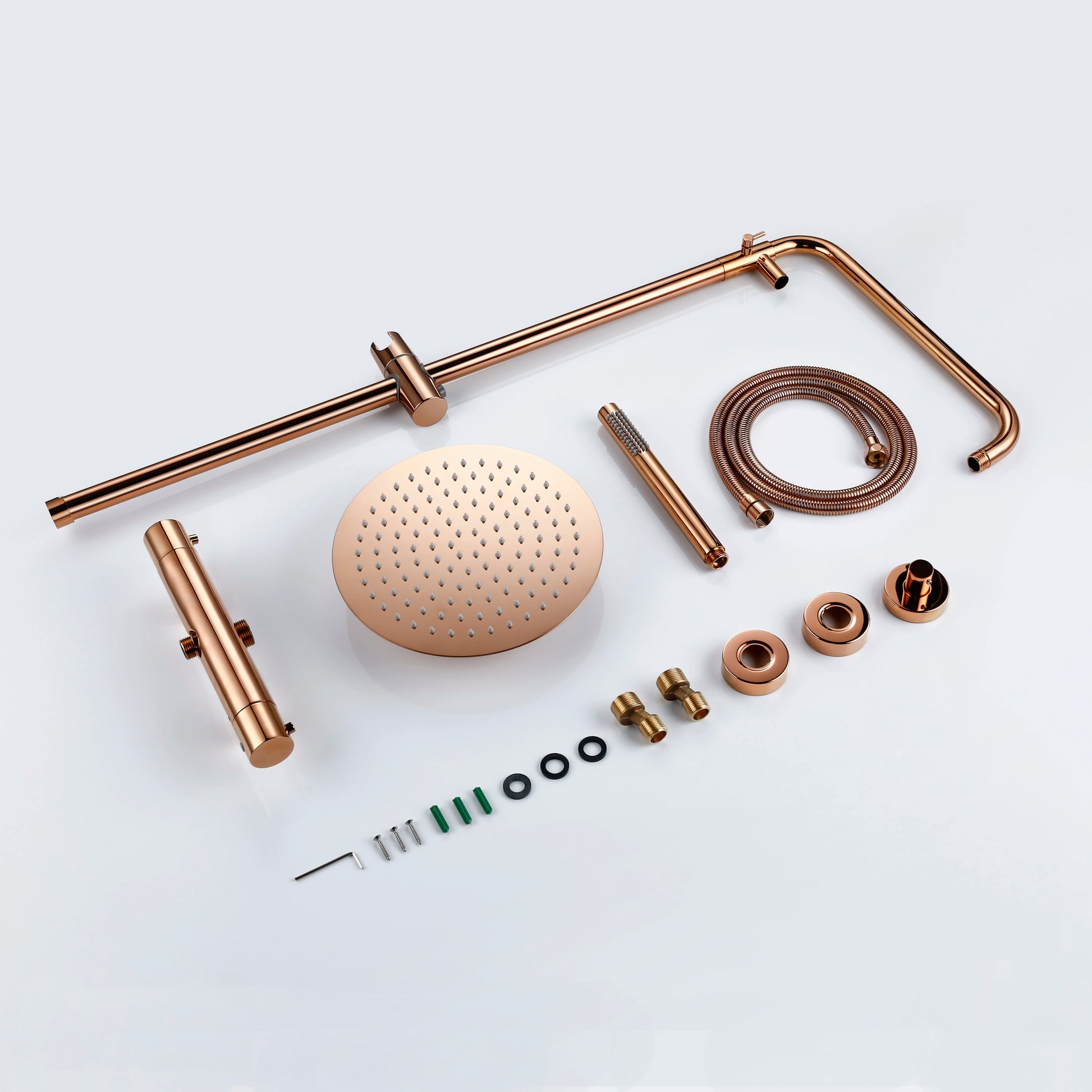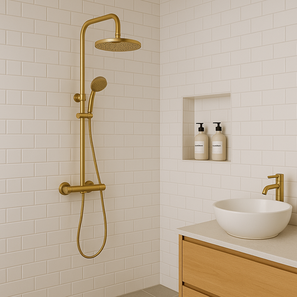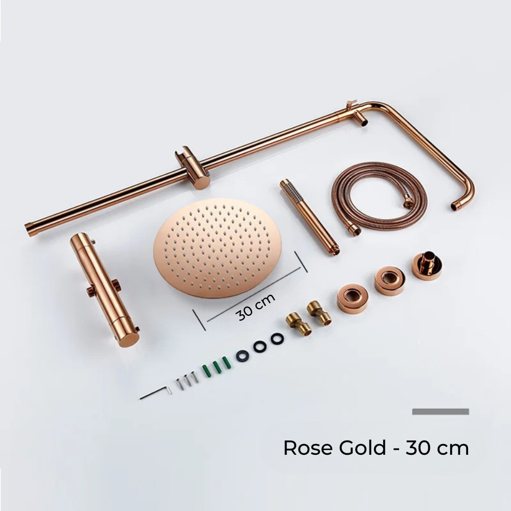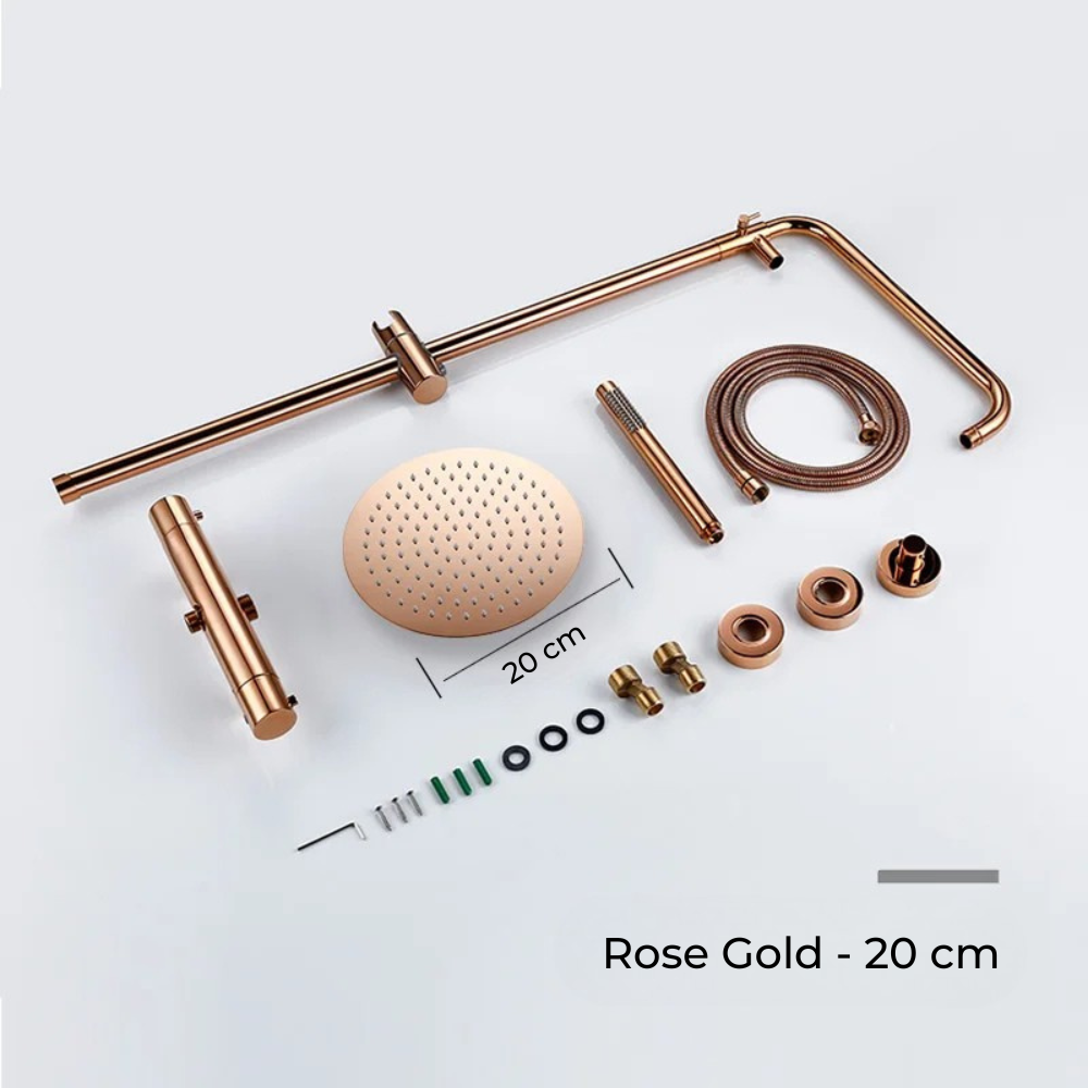 Colonne de Douche Murale Dorée avec Mitigeur Thermostatique et Ciel de Pluie