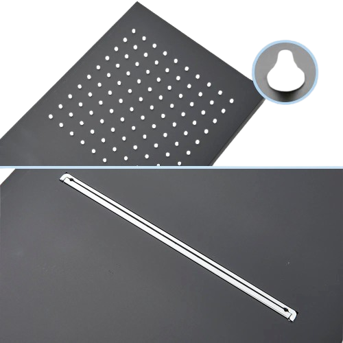 Offrez une expérience de douche unique avec la colonne de douche noire encastrable à effet pluie et cascade. Son mitigeur thermostatique maintient une température constante et sécurisée, tandis que la large tête de pluie diffuse un jet enveloppant et que la fonction cascade procure une sensation apaisante et naturelle. Grâce à son système encastrable, cette colonne offre un rendu minimaliste et élégant, digne des salles de bain haut de gamme. Son design noir moderne combine ainsi style, confort et bien-être pour transformer chaque douche en véritable moment de détente.
