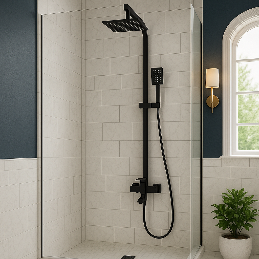 Apportez une touche contemporaine à votre salle de bain avec cette colonne de douche noire au style épuré et élégant. Son design raffiné s’intègre parfaitement dans les intérieurs modernes comme classiques. Un choix idéal pour allier esthétisme, confort et praticité.