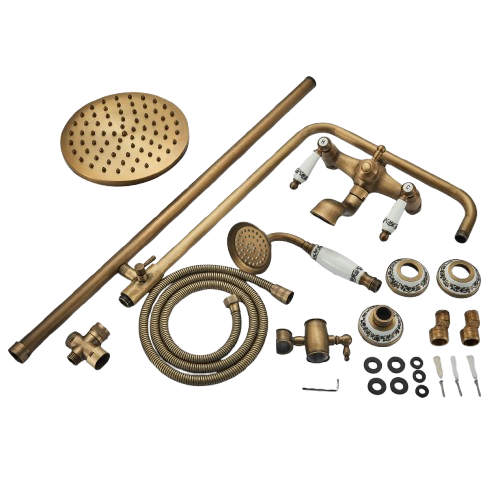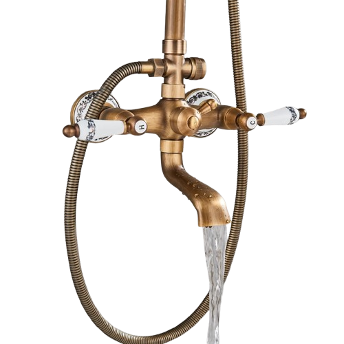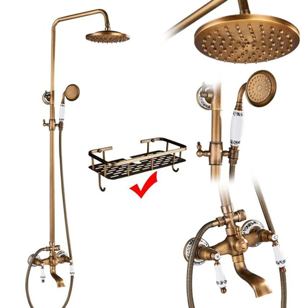 Colonne de Douche Antique avec Mitigueur en Laiton et Étagère